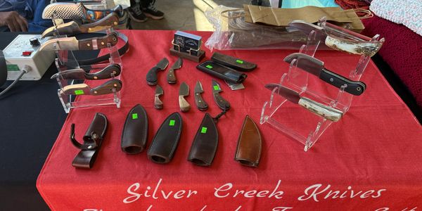 Silver Creek Knives has amazing handcrafted knives of all sizes and styles! Want to place a custom knife order, Tommy Lott is a very talented craftsman and can create any knife to make your vision become a reality. Silver Creek Knives also has on the spot knife sharpening at every market!